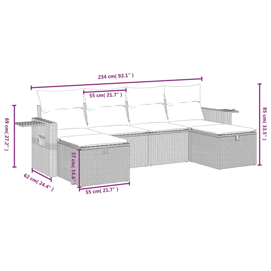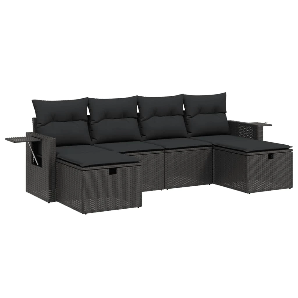 vidaXL Sofos komplektas su pagalvėlėmis, 6 dalių, juodas, poliratanas