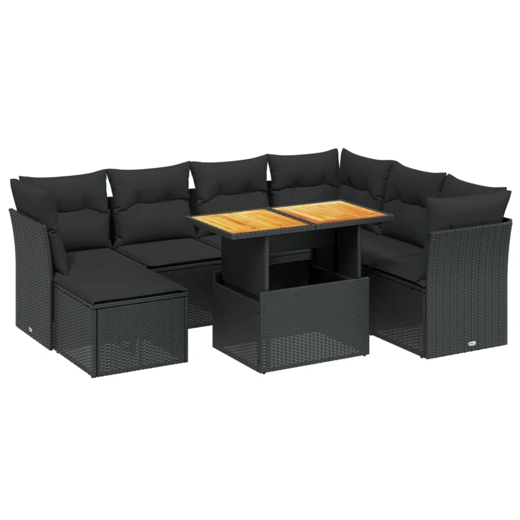 vidaXL Sofos komplektas su pagalvėlėmis, 8 dalių, juodas, poliratanas