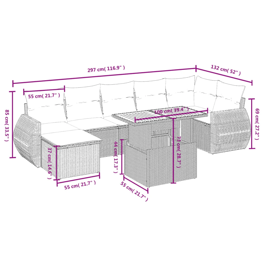 vidaXL Sofos komplektas su pagalvėlėmis, 8 dalių, smėlio, poliratanas