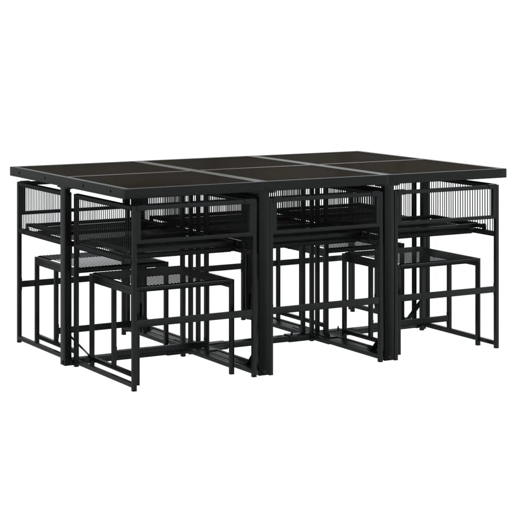vidaXL Sodo valgomojo baldų komplektas, 11 dalių, juodas, poliratanas