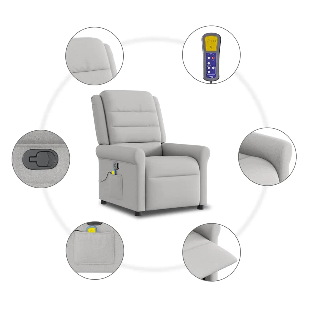 vidaXL Atlošiamas masažinis krėslas, pilkos spalvos, audinys