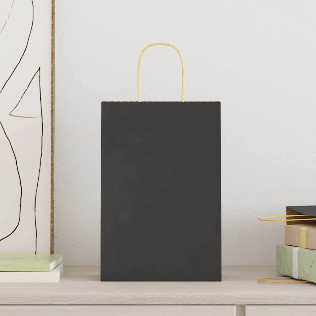 vidaXL Popieriniai maišeliai 50vnt., su rankenomis, juodas, 21x11x31cm