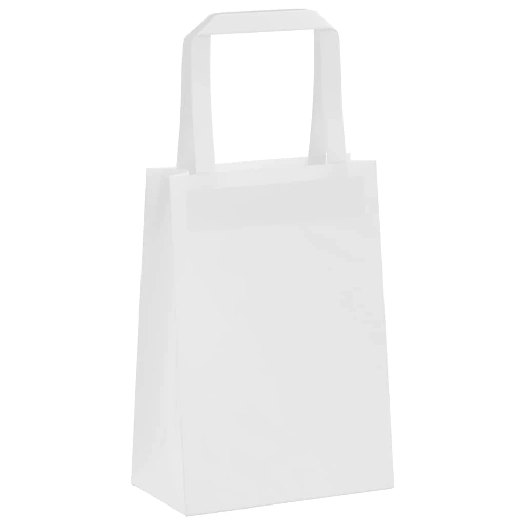 vidaXL Popieriniai maišeliai, 50vnt., su rankenomis, baltas, 15x8x21cm