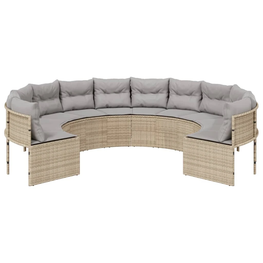 vidaXL Sodo sofa su pagalvėlėmis, smėlio spalvos, poliratanas, apvali