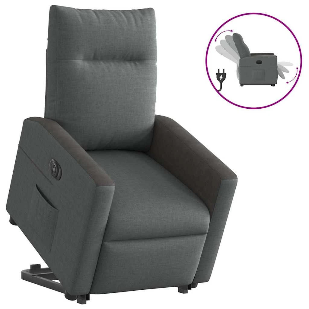 vidaXL Atsistojantis atlošiamas krėslas, tamsiai pilkas, audinys