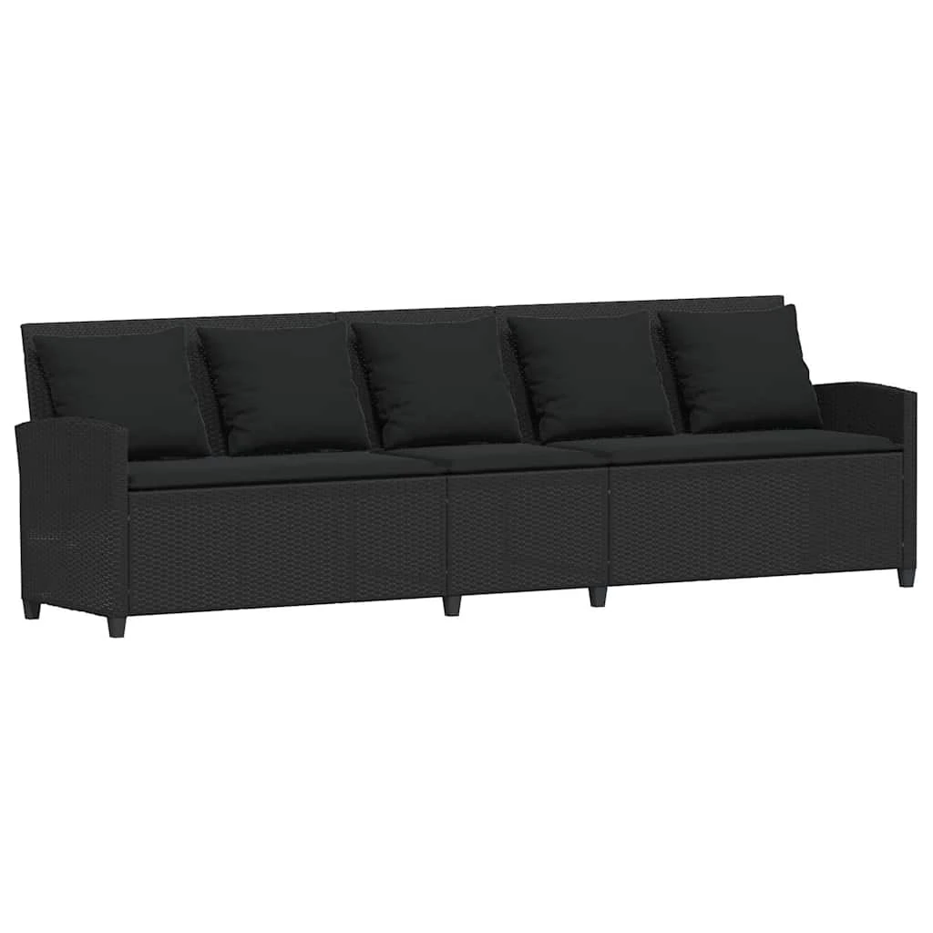 vidaXL 5-vietīgs dārza dīvāns ar spilveniem, melns polirotangpalmas