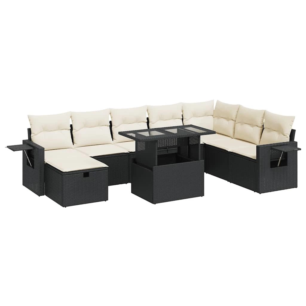 vidaXL Sodo komplektas su pagalvėlėmis, 9 dalių, juodas, poliratanas