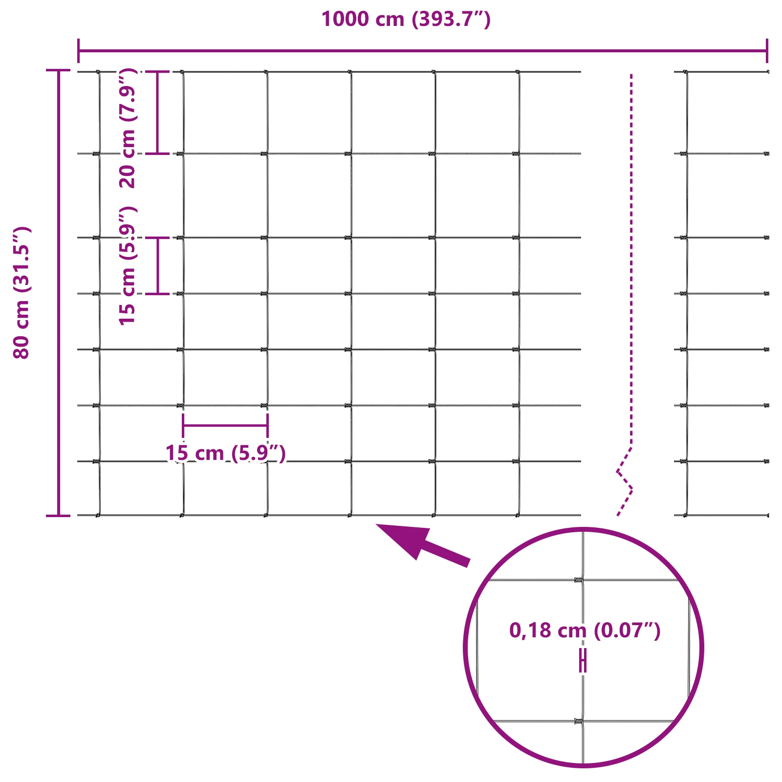 - Vispārējās izmēri: 1000 x 80 x 0,18 cm (G x P x A)