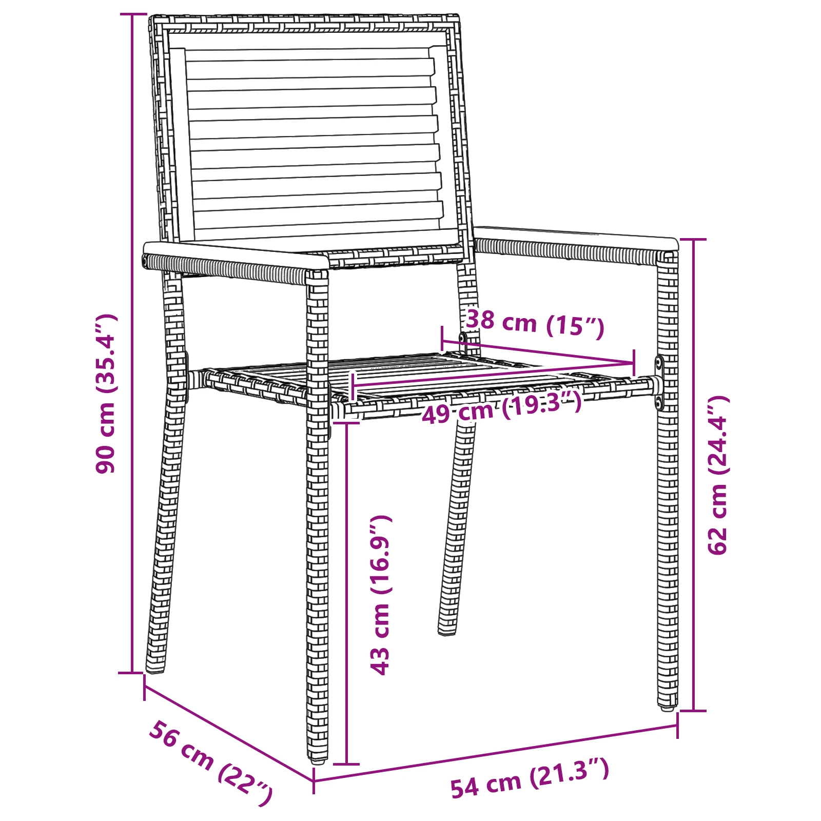 - Medžiaga: Kietas akacijos medis, PE ratanas
