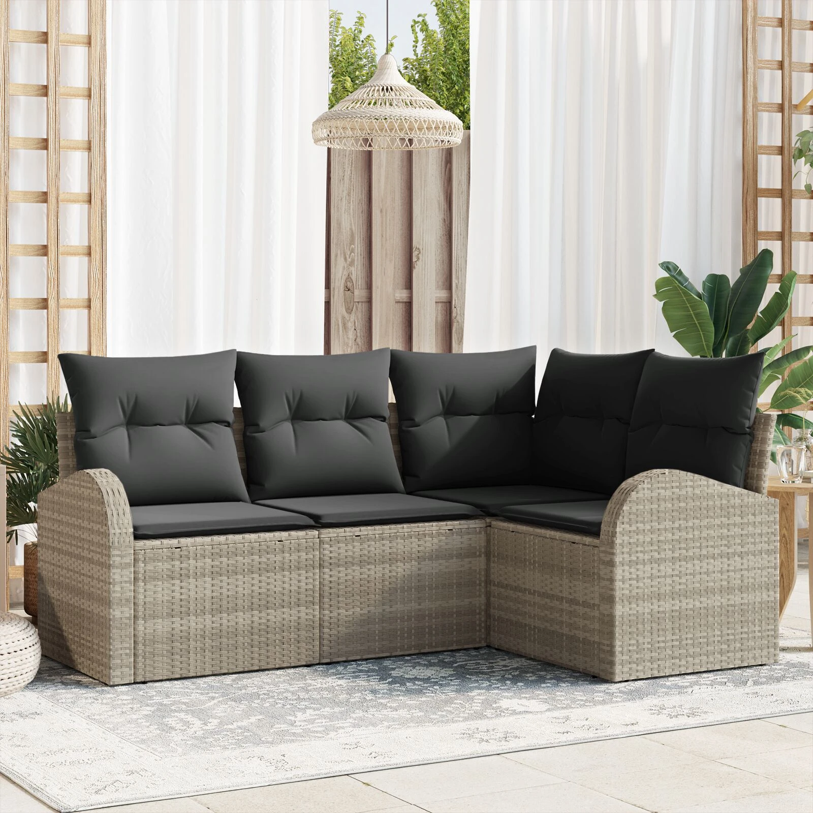 vidaXL Sodo Sofų Rinkinys 4 pcs Šviesiai pilka poliratanas