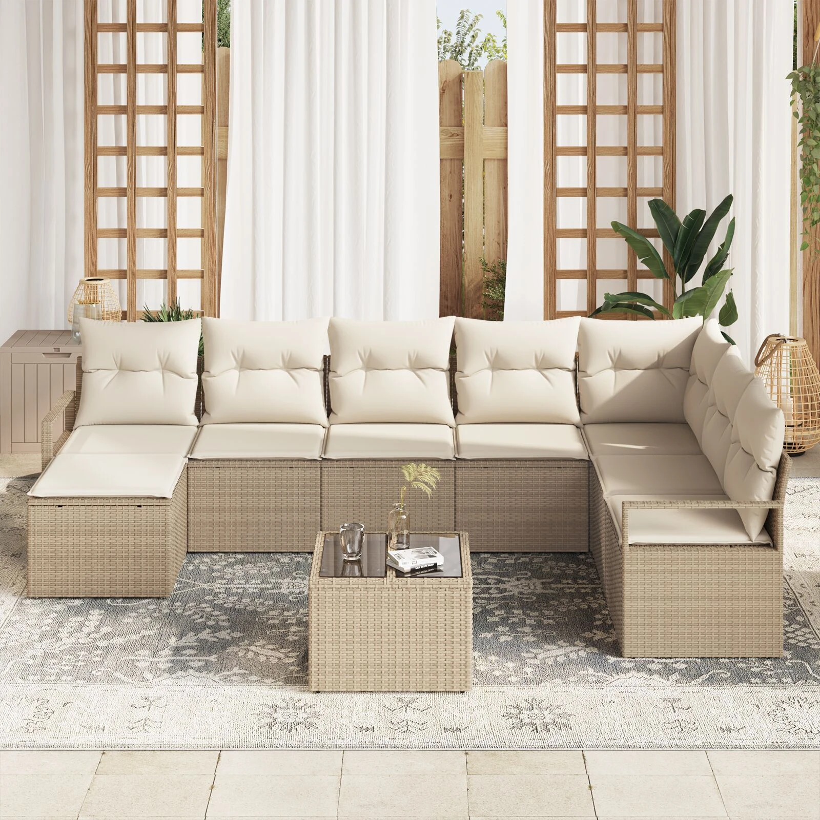 vidaXL Sodo Sofų Rinkinys 9 pcs Smėlio Poli ratanas