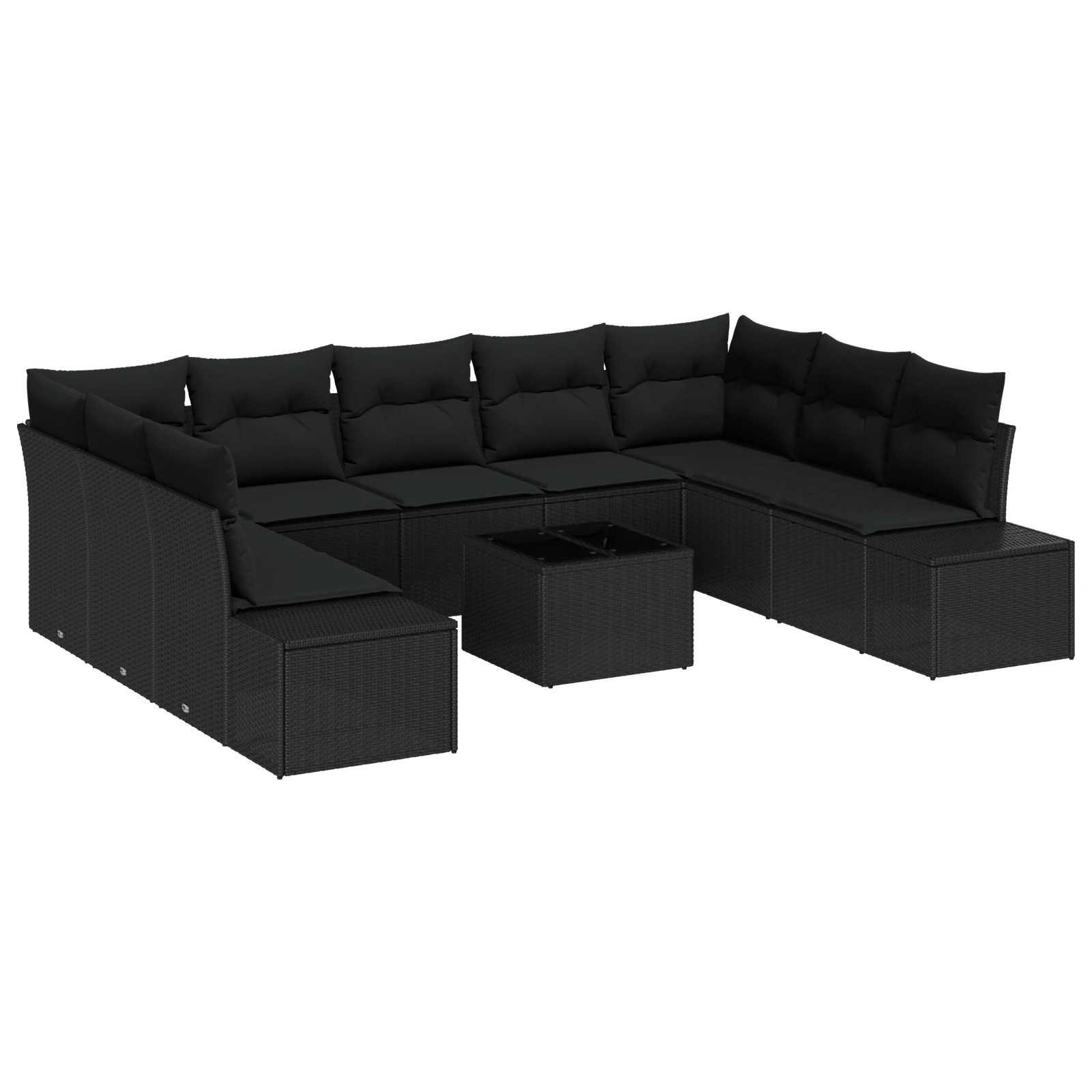 vidaXL Sodo Sofų Rinkinys su pagalve 10 pcs Juoda poliratanas
