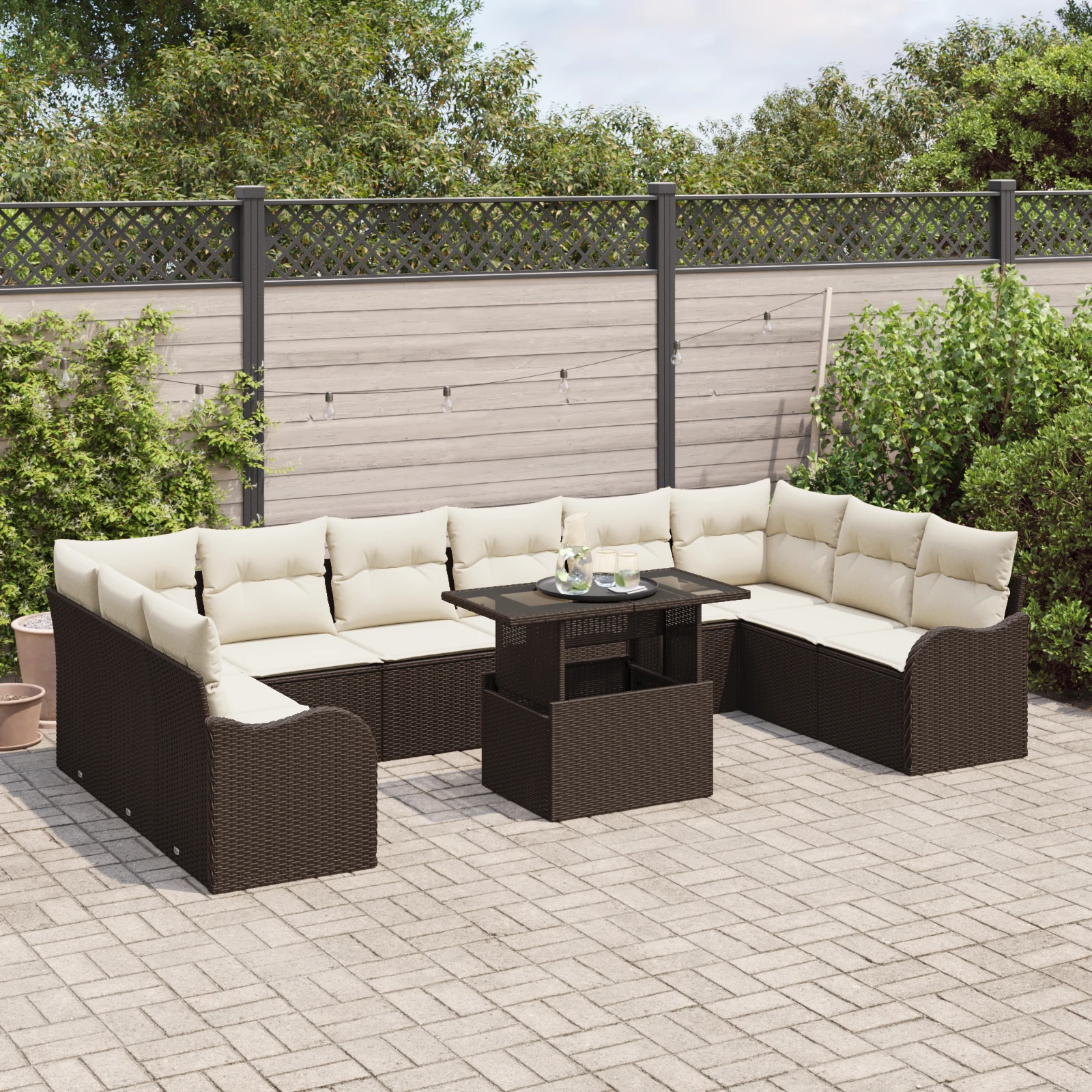 vidaXL Sodo Sofų Rinkinys su pagalve 11 pcs Ruda Poli ratanas