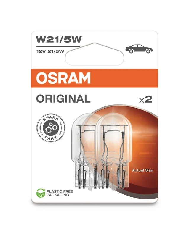 Zīmols- Osram. Artikuls- 7515. Spuldzītes tips- Halogēnā spuldze. Spuldzes veids saskaņā ar ECE- W21/5W. Spriegums- 12 V. Krāsa- Caurspīdīga. Cokols- W3x16q. Spuldzītes jauda- 21 W. Gaismas plūsma (±15%)- 35 lm. Vienību skaits iepakojumā- 2. Papildus informācija- Izmēri: 47.5 x 20 mm.