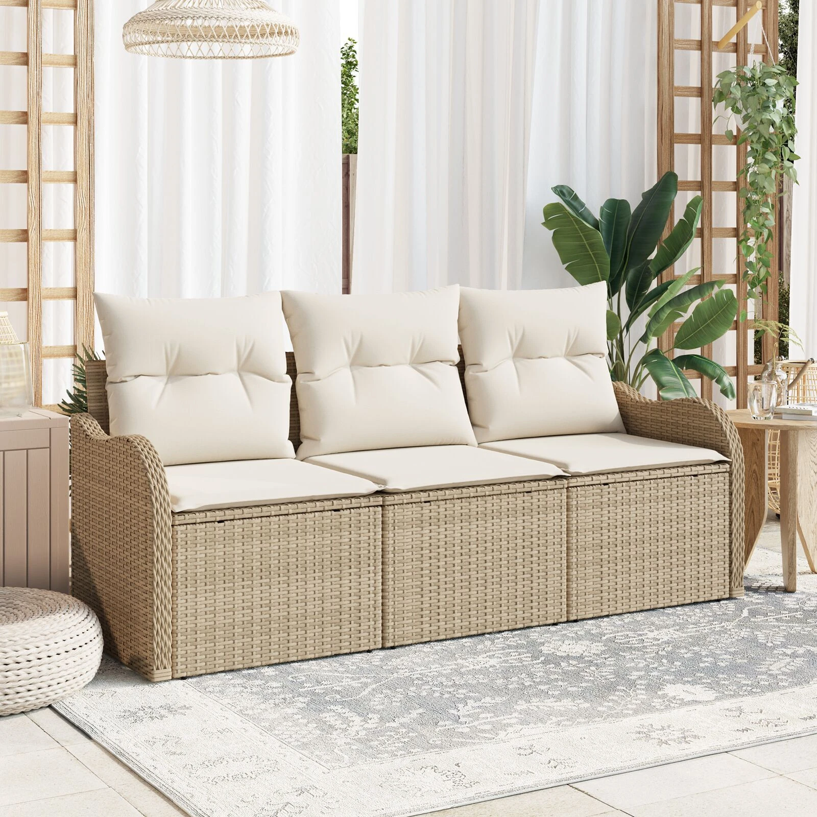 vidaXL Sodo Sofų Rinkinys su pagalve 3 pcs Smėlio Poli ratanas