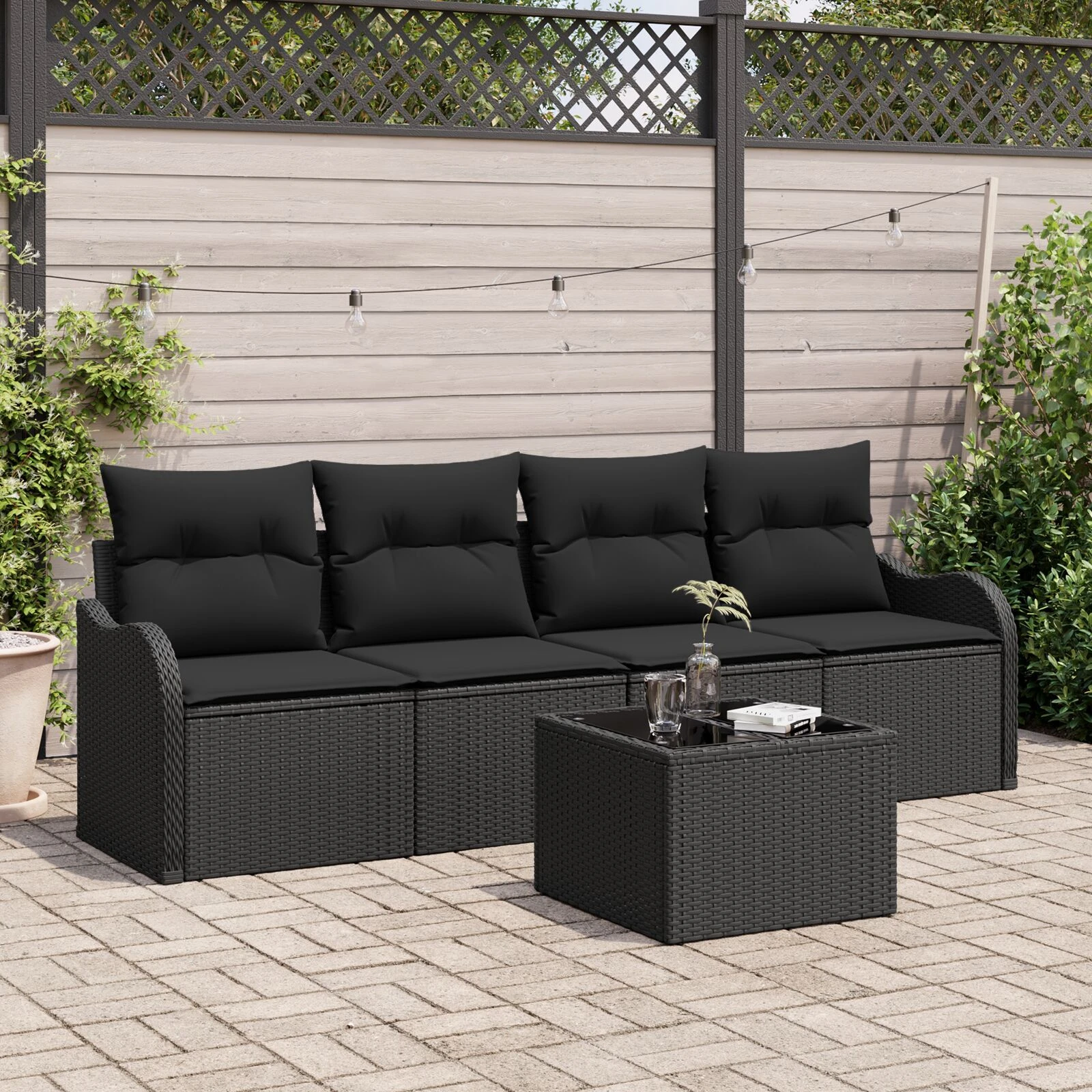 vidaXL Sodo Sofų Rinkinys su saugykla 5 pcs Juoda poliratanas