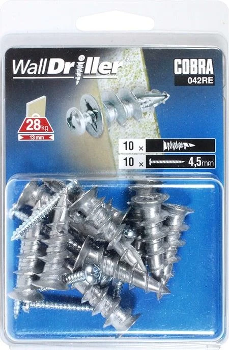 Prekės ženklas- Cobra. Įvarų tipas- Skirtas GK plokštėms . Ilgis- 25 mm. Skersmuo- 4 mm. Tvirtinimo būdas- Įsukamas. Įvarų medžiaga- Metalas . Spalva- Pilka. Vienetai pakuotėje- 10.