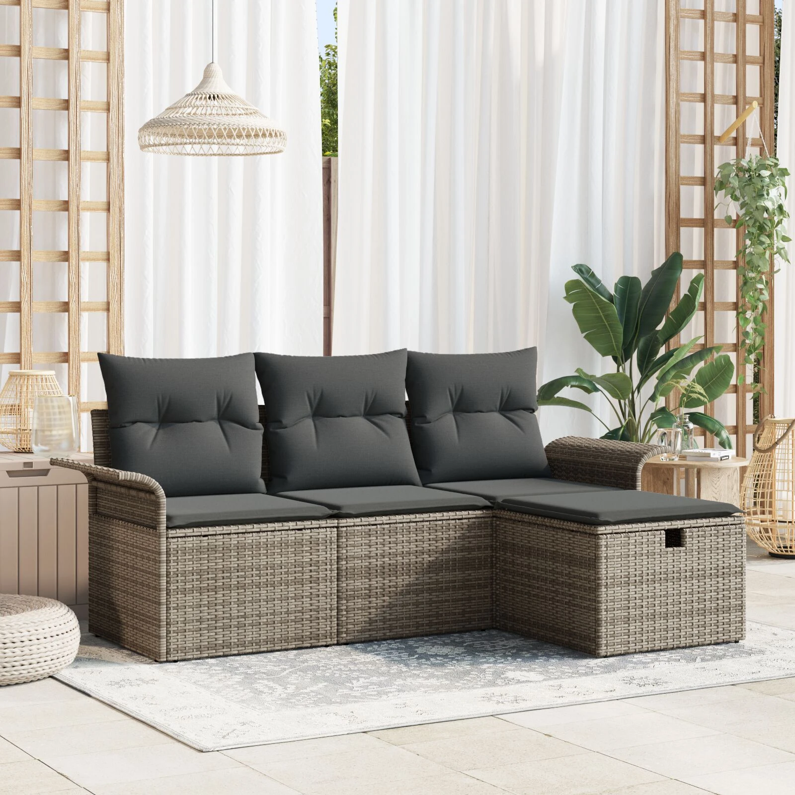 vidaXL Sodo Sofų Rinkinys su pagalve su saugykla 4 pcs Poli ratanas