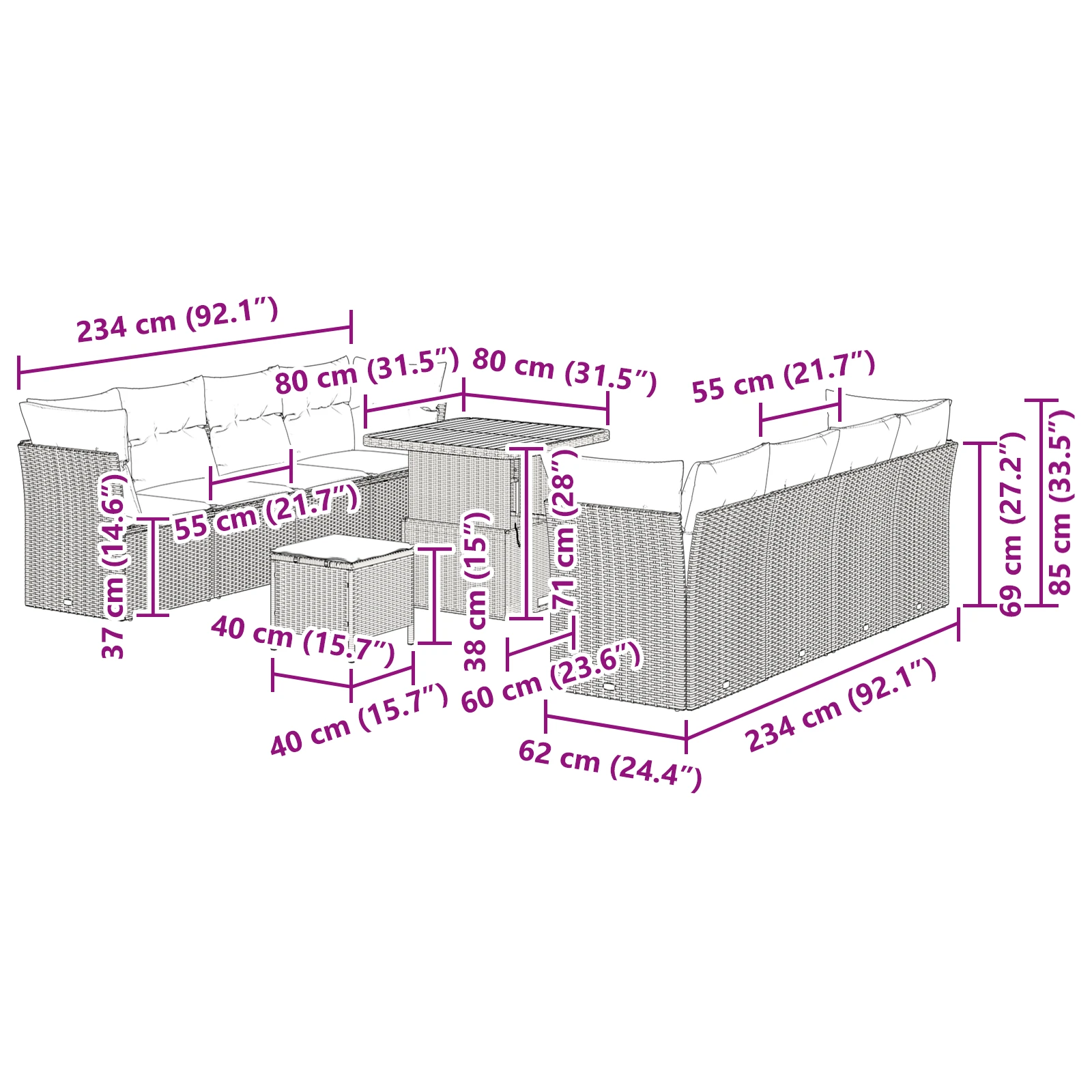 vidaXL Sodo Sofų Rinkinys 11 pcs Juoda poliratanas