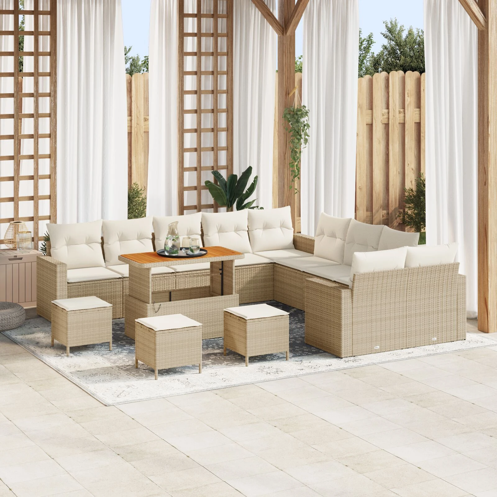 vidaXL Sodo komplektas su pagalvėlėmis, 11 dalių, smėlio, poliratanas