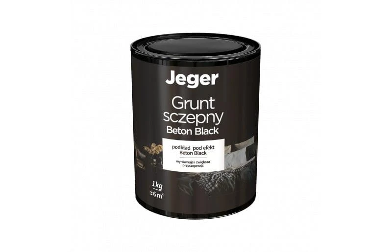 Prekės ženklas- Jeger. Modelis- Beton Black Primer. Kiekis pakuotėje. kg- 1. Dažų tipas- Specialios paskirties dažai. Spalva- Juoda. Blizgumas- Nėra (neapdorotas paviršius). Skiediklis- Neskiedžiama. Skirta apdailos darbams- Vidaus. Dažų paskirtis- Sienoms. Tinka dengti paviršius- Glaistytus paviršius. Išeiga- ~6m²/kg. Darbo įrankiai- Volelis. Visiškai išdžiūsta po- 4 - 4h.