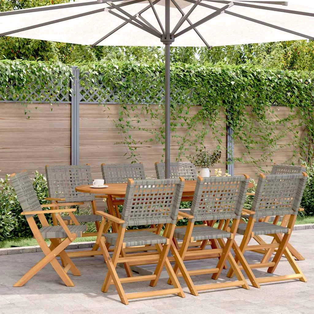 vidaXL Sulankstomos sodo kėdės, 8vnt., pilkos, poliratanas ir mediena