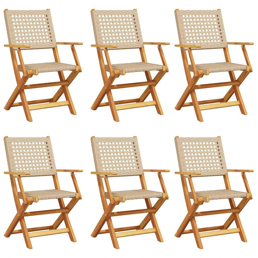 vidaXL Sulankstomos sodo kėdės, 6vnt., smėlio, poliratanas ir mediena