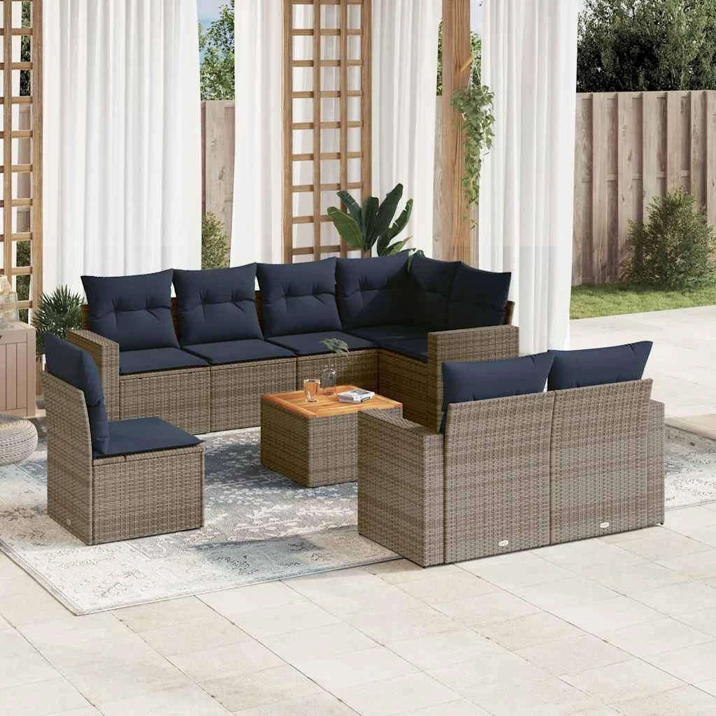 vidaXL Sofos komplektas su pagalvėlėmis, 9 dalių, pilkas, poliratanas