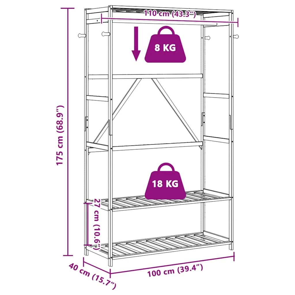 vidaXL Drabužių kabykla su lentynomis, 110x40x175cm, bambukas