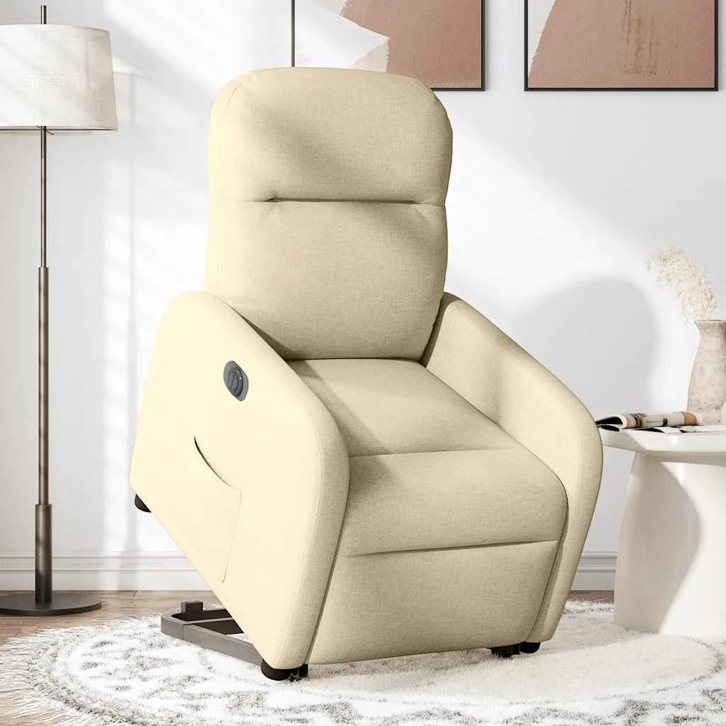 vidaXL Elektrinis atsistojantis atlošiamas krėslas, kreminis, audinys