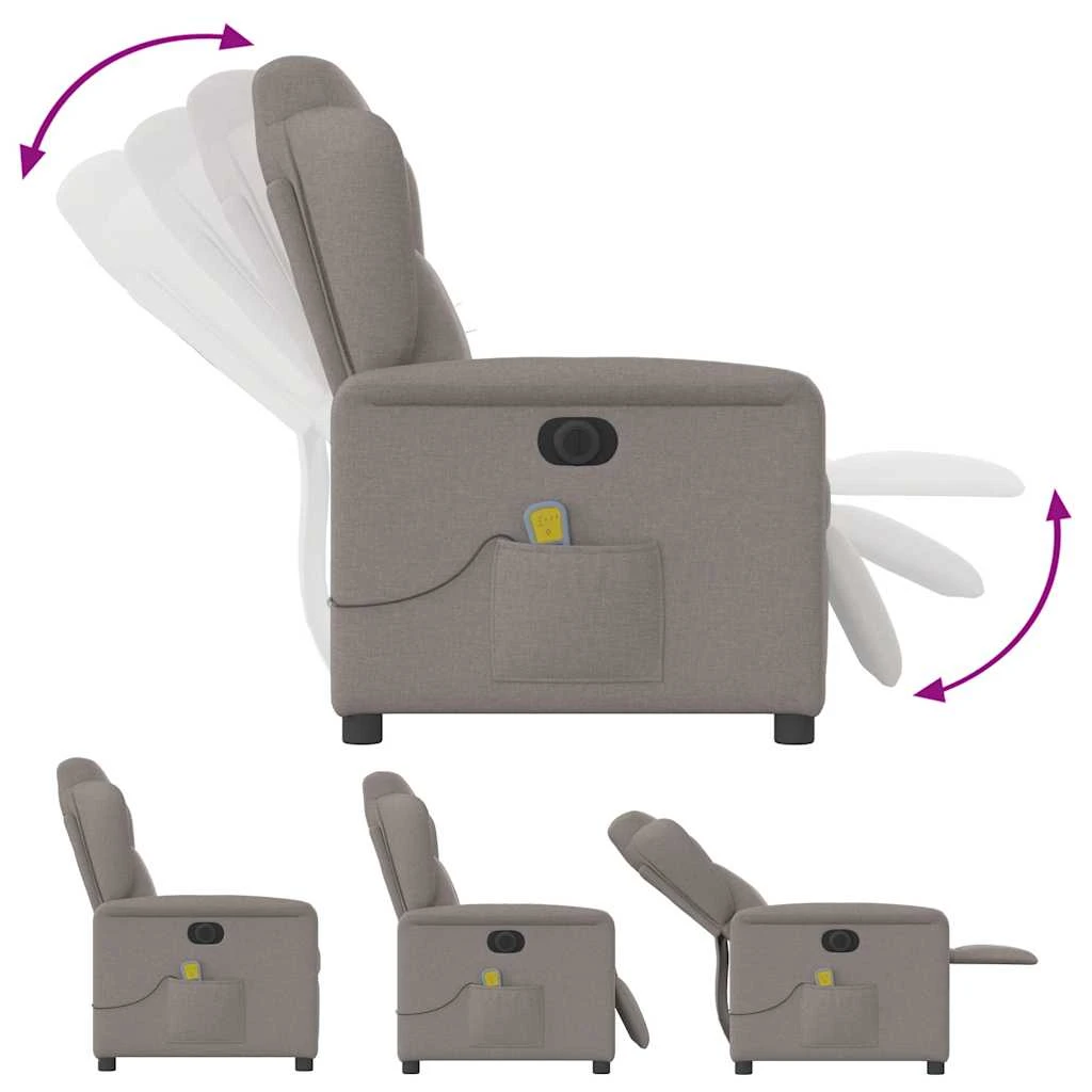 vidaXL Elektrinis atlošiamas masažinis krėslas, taupe, audinys