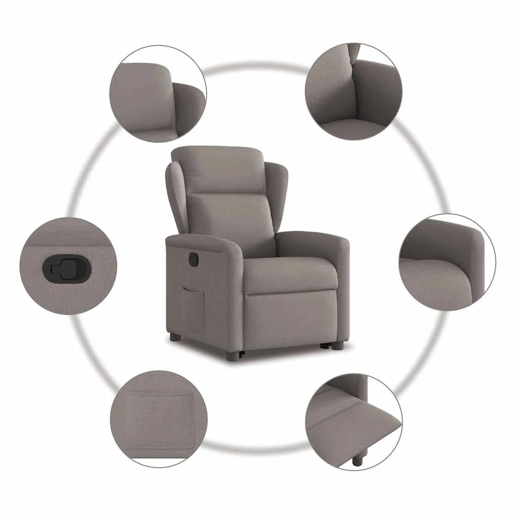 vidaXL Atsistojantis atlošiamas krėslas, taupe spalvos, audinys