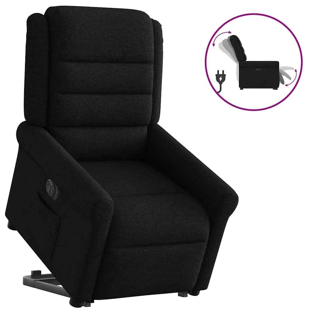 vidaXL Elektrinis atsistojantis atlošiamas krėslas, juodas, audinys