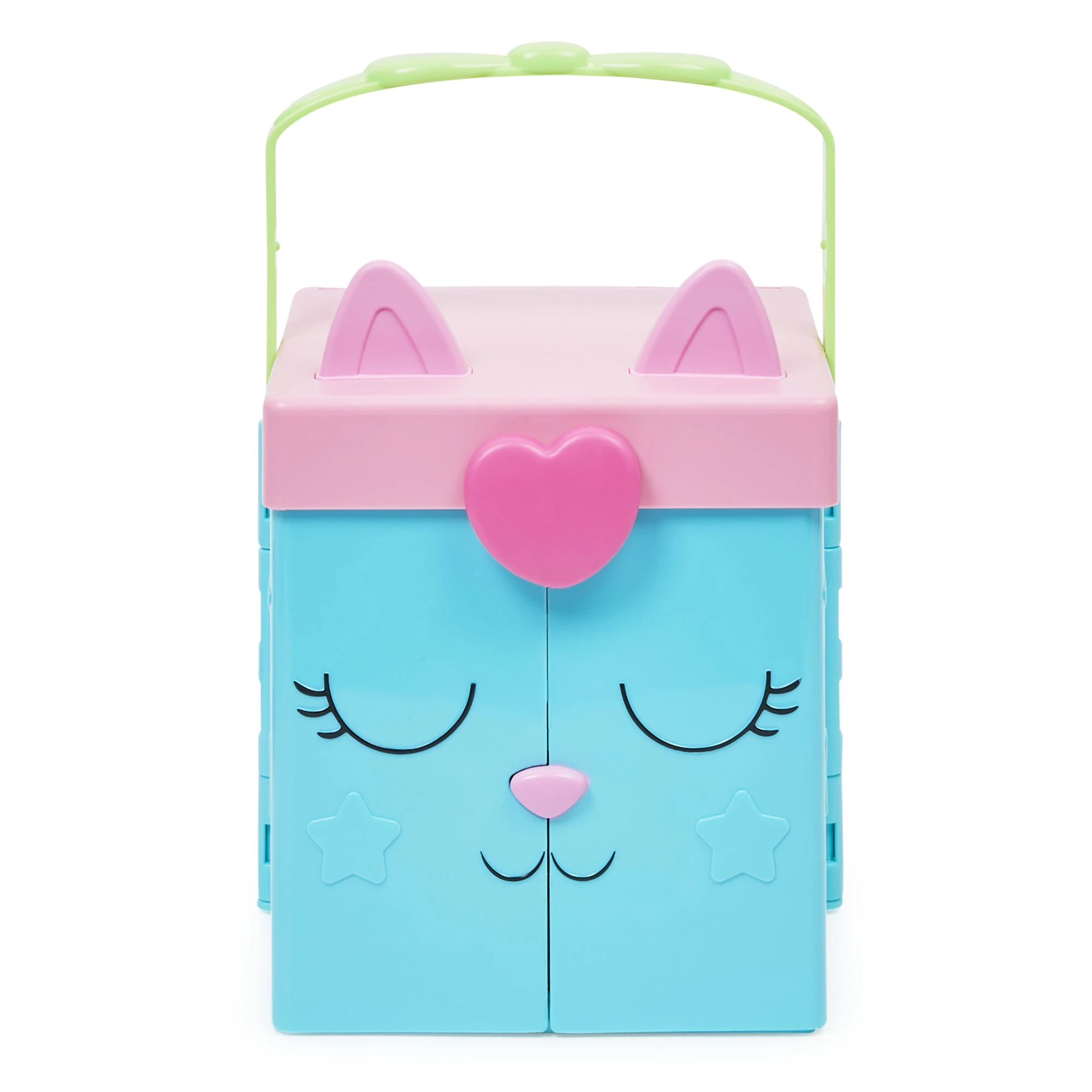 Šis rinkinys – tai nešiojama lėlytės Gabby spinta! Spinta išsiskleidžia į 4 skirtingus blokus, kurie tampa puikiomis fotosesijų erdvėmis! Šį rinkinį privalo turėti kiekvienas serialo „Gabby’s Dollhouse“ fanas! Užsuk į kambarį su kosmetiniu staliuku ir veidrodžiu, kuriame yra trys stilingi perukai ir du jų stoveliai, padaryk lėlytei šukuoseną ir makiažą, o tada skubėk į kambarį su spinta, kur yra trys pakabos ir stalčiukai su dviem skirtingais Gabby drabužių deriniais. Išrinkęs Gabby drabužius, šok ant besisukančio podiumo ir leisk jai demonstruoti madas. Nepamiršk išpakuoti siuntos ir pažiūrėti, koks siurprizas laukia šįkart – visai kaip Gabby daro seriale! Kai lėlytė bus pasiruošusi fotosesijai, ji gali pasinaudoti plastikinėmis kopėčiomis ir užlipti į fotostudiją, kurioje laukia net 4 skirtingi fonai įspūdingoms nuotraukoms.