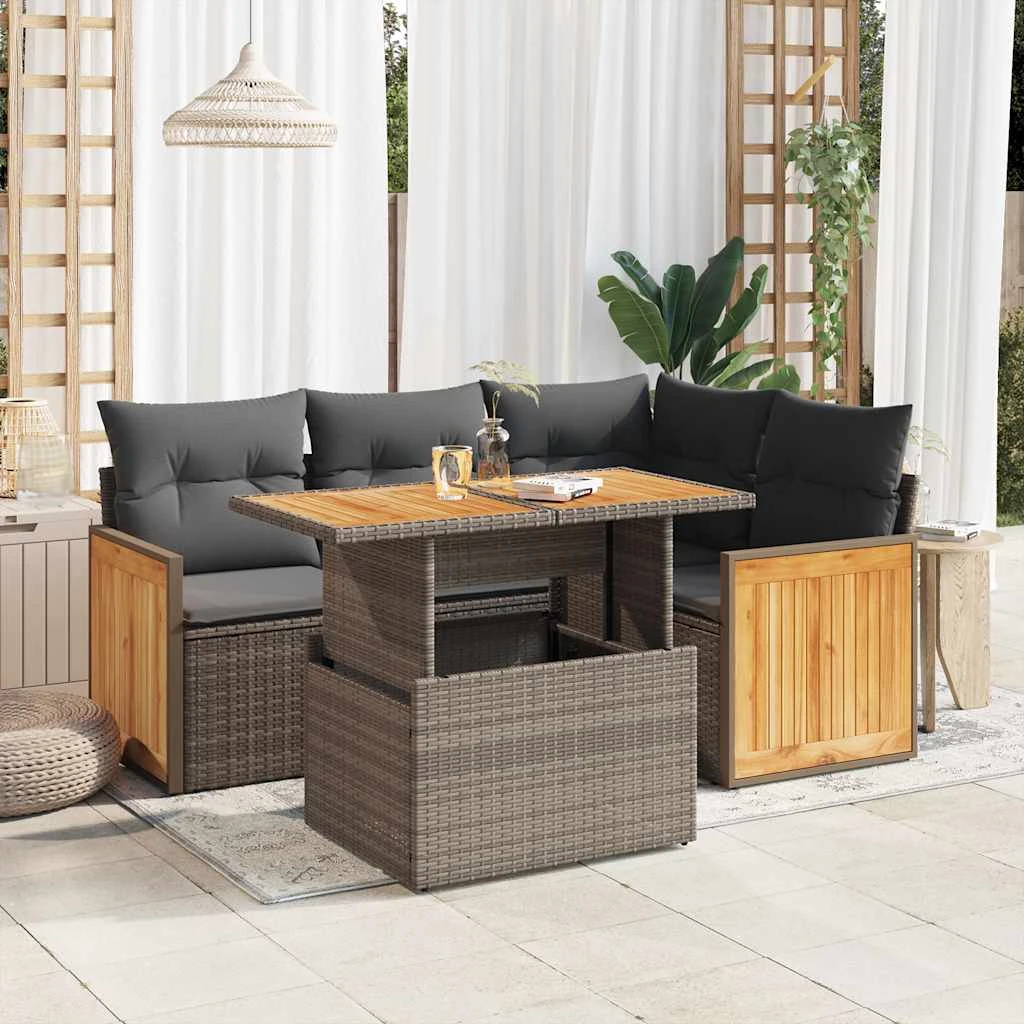 vidaXL Sodo komplektas su pagalvėlėmis, 5 dalių, poliratanas-akacija