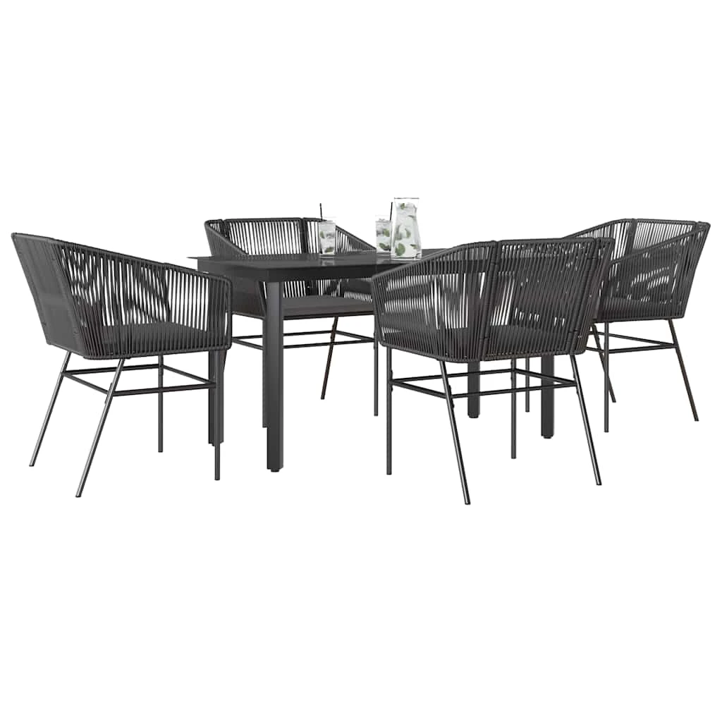 vidaXL Sodo komplektas, 5 dalių, juodas, poliratanas ir stiklas