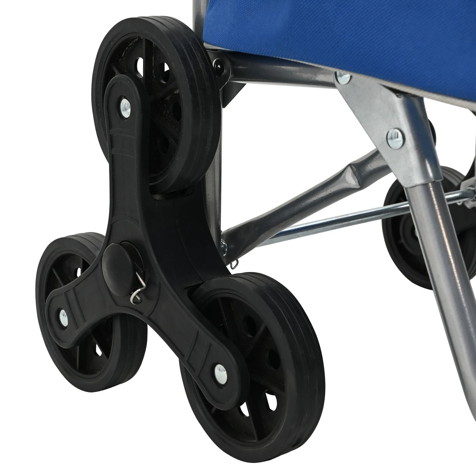 - Vandeniui ir UV atsparus: Su tokiomis savybėmis šis vežimėlis apsaugo jūsų daiktus nuo drėgmės bei saulės spindulių, todėl jie išlieka sausi ir neblunka net prastomis oro sąlygomis. Tai leidžia būti patikimu palydovu tiek kasdieniams apsipirkimams, tiek ilgoms kelionėms lauke.