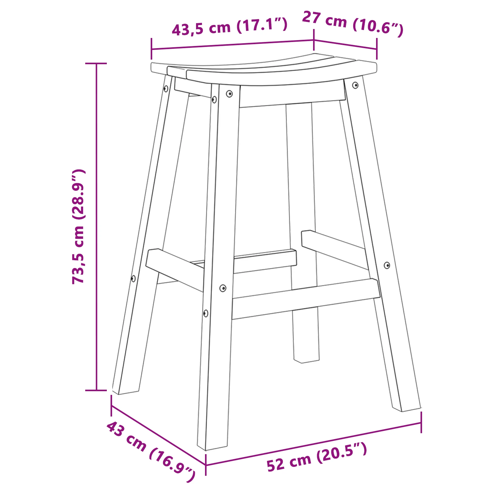 - Sėdynės aukštis nuo žemės: 73,5 cm