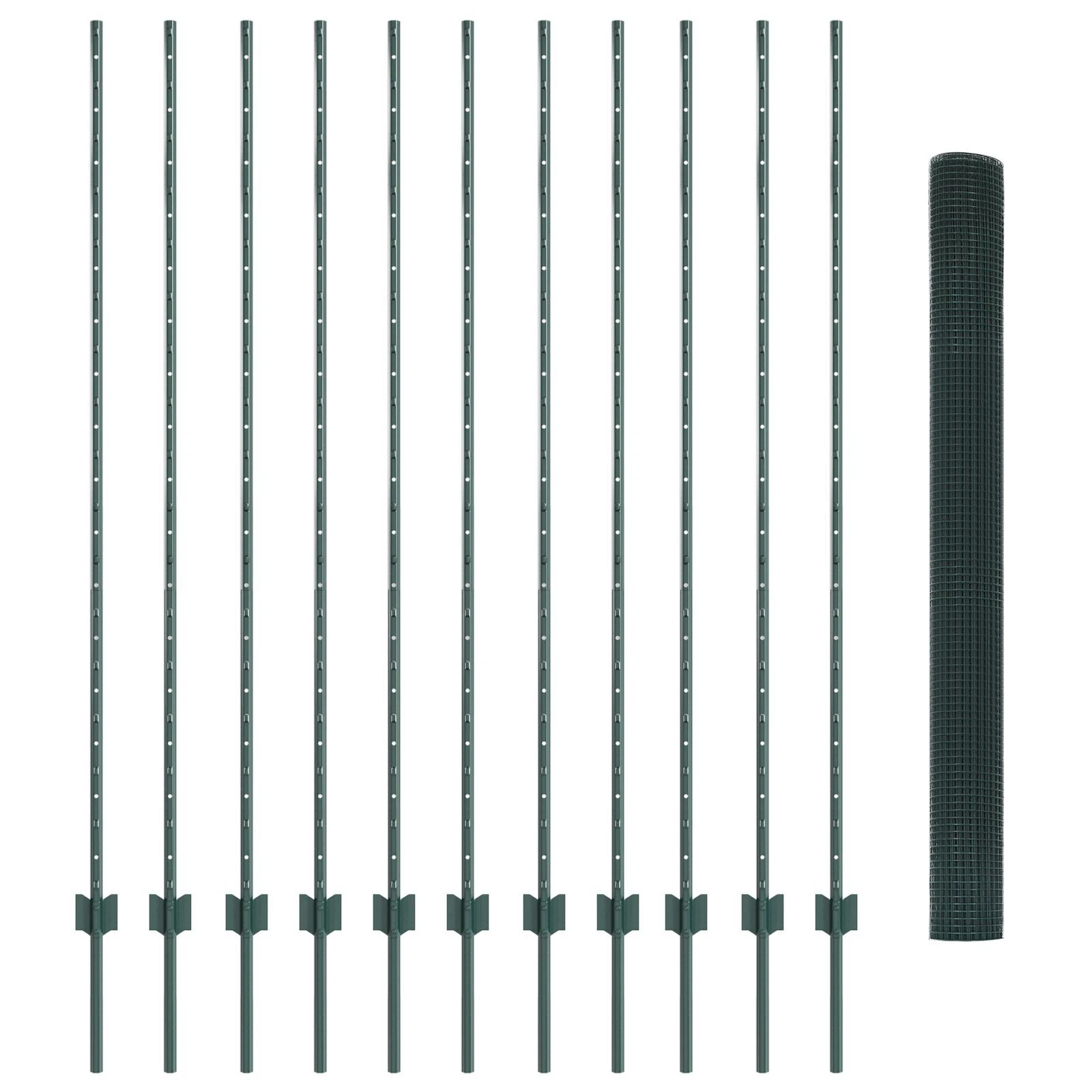 vidaXL Tvora su stulpais Žalia 1,6 x 25 m Plienas ir PVC