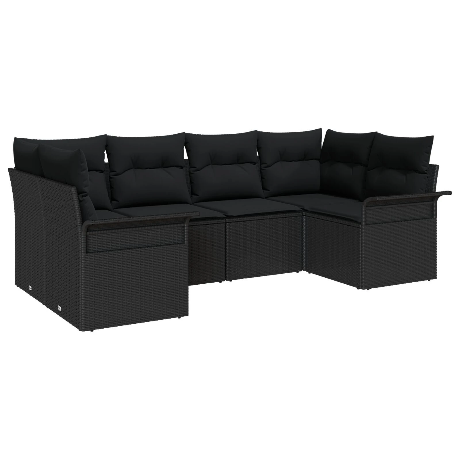 vidaXL Sodo Sofų Rinkinys su pagalve 6 pcs Juoda poliratanas
