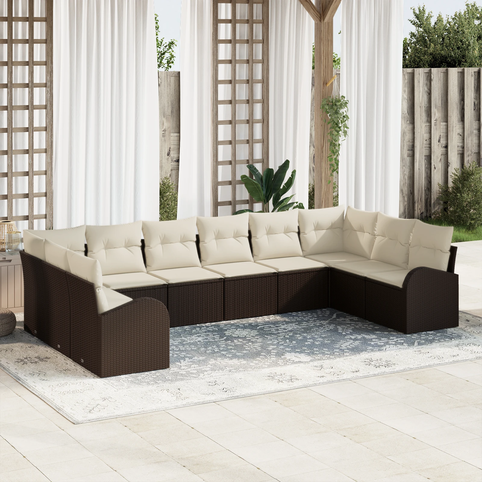 vidaXL Sofos komplektas su pagalve 10 pcs Ruda Poliratanas