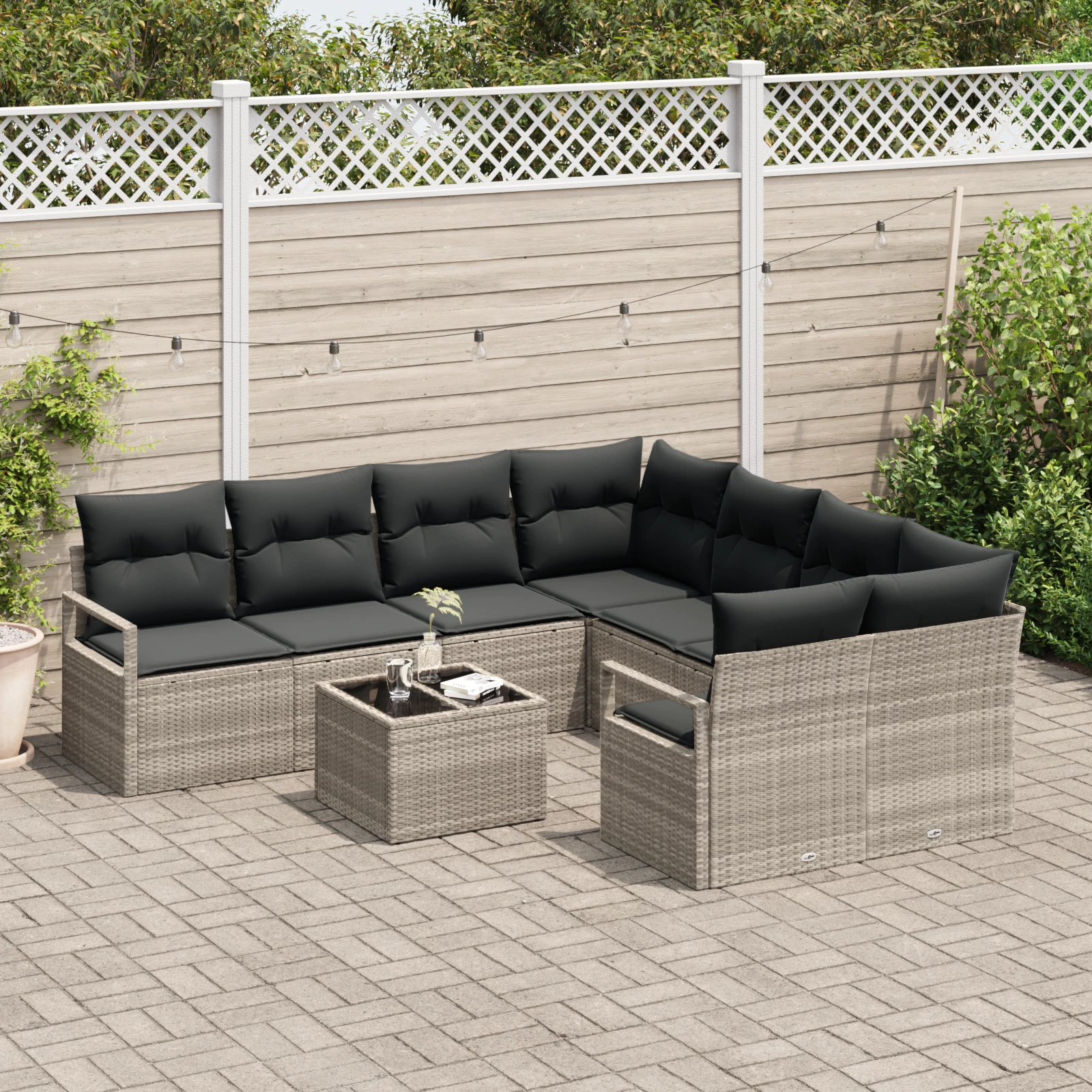 vidaXL Sodo Sofų Rinkinys su pagalve su saugykla 9 pcs Juoda