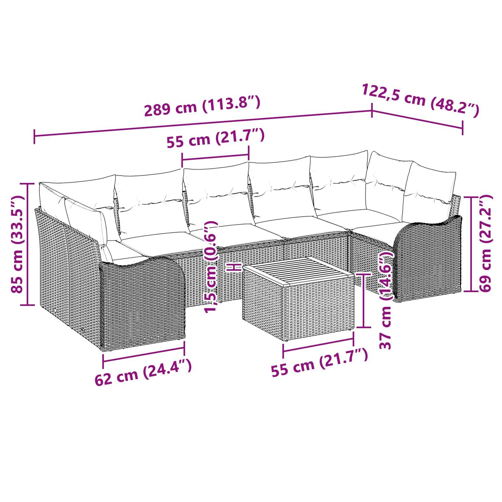 Šis modulinis sodo sofos komplektas yra idealus sprendimas lauko poilsiui. Jo modernus dizainas su švariomis linijomis ir minimaliais akcentais padarys jūsų sodą dar gražesnį. Nesvarbu, ar su draugais, ar tiesiog vienumoje, šis sofos komplektas sukuria malonią atmosferą po saule.