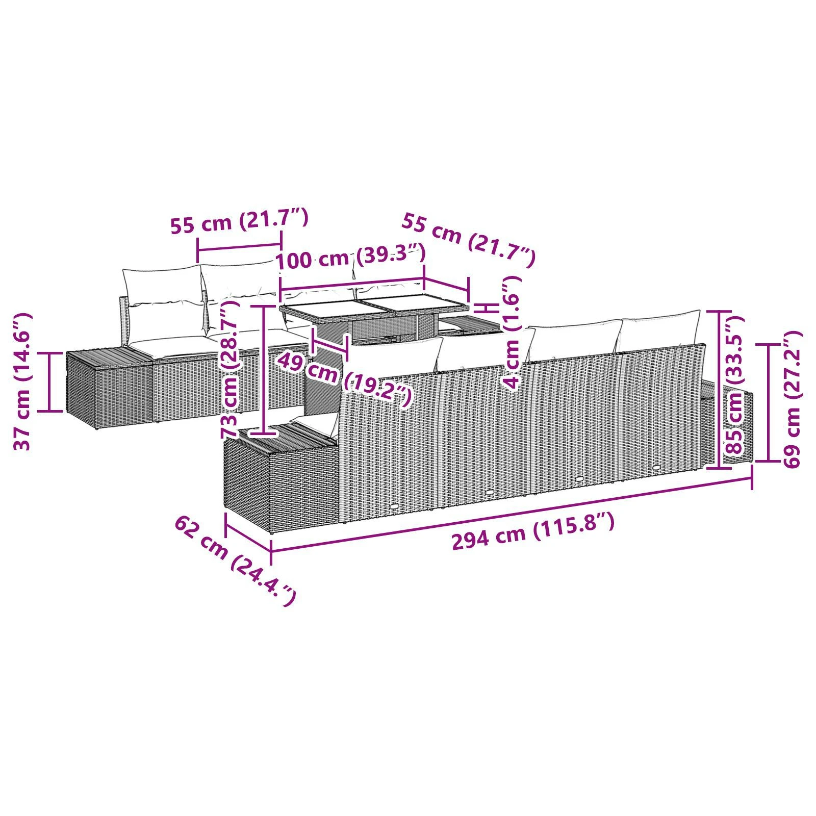vidaXL Dārza dīvānu komplekts ar spilvenu 9 pcs Bēšs un krēms