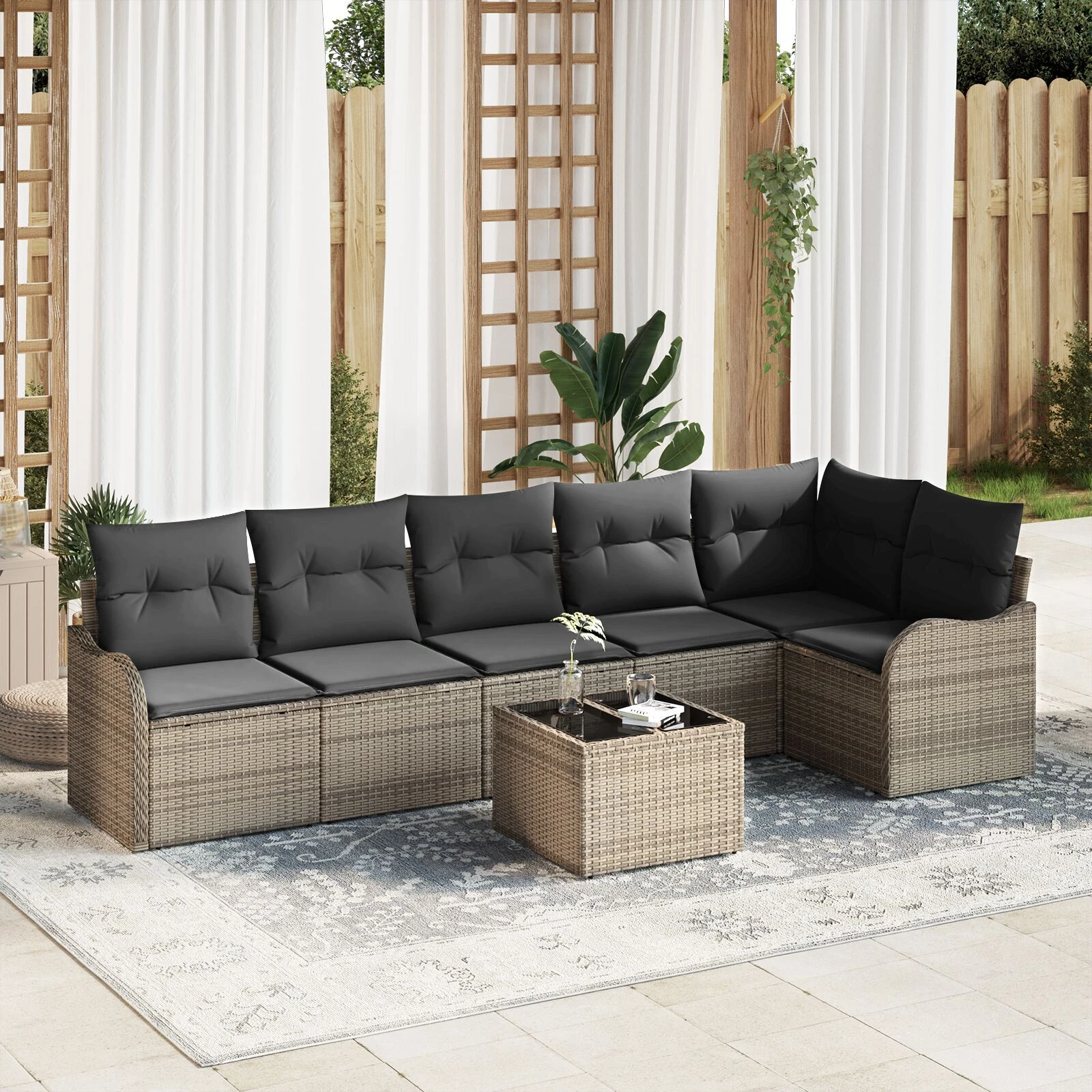vidaXL Sofos komplektas su pagalvėlėmis, 7 dalių, smėlio, poliratanas