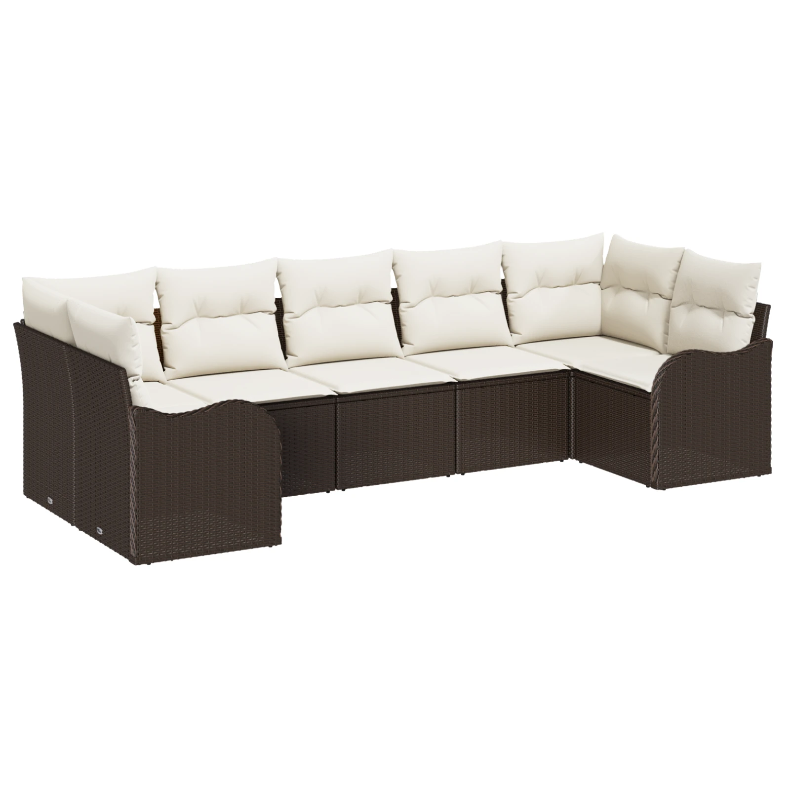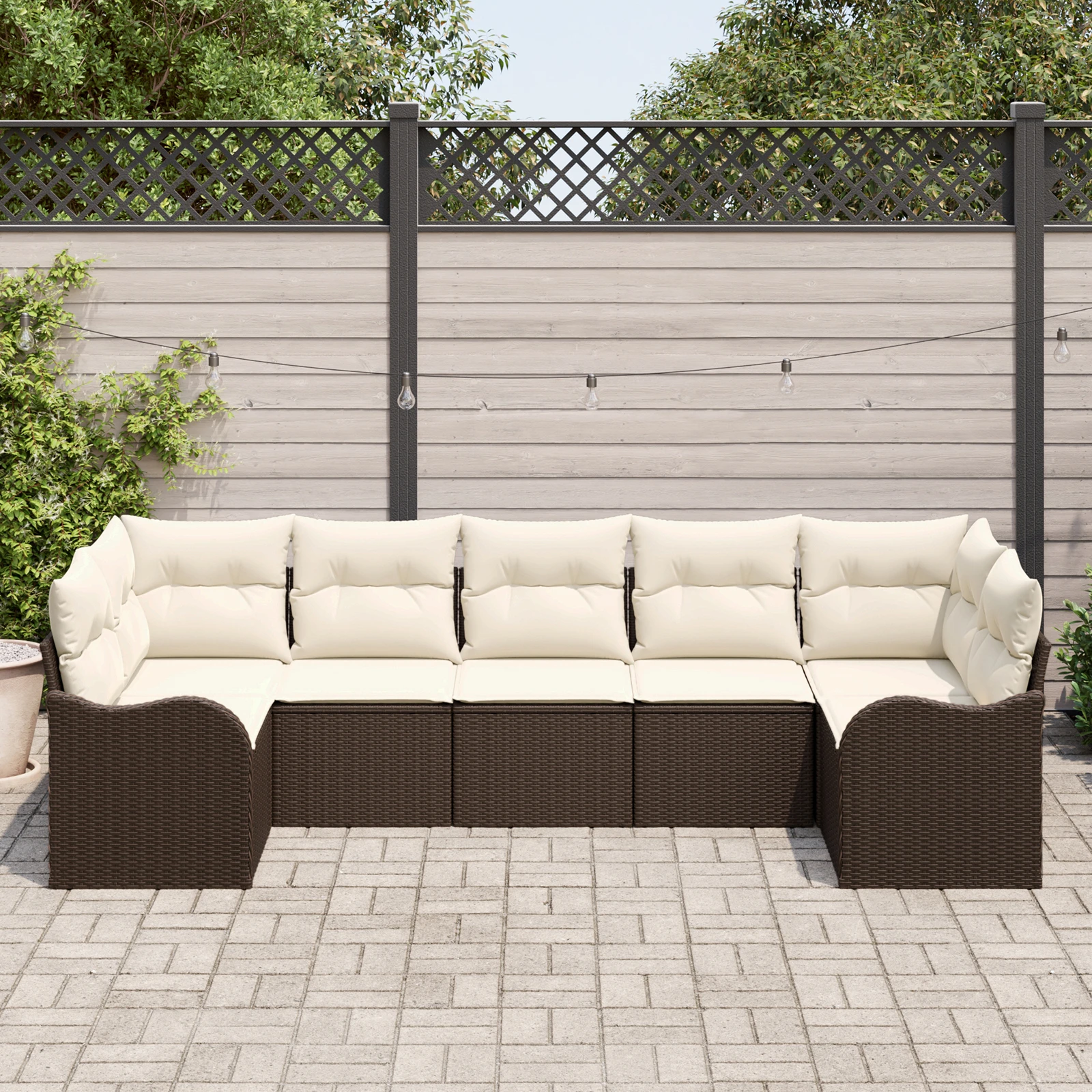 vidaXL Sodo Sofų Rinkinys su pagalve 7 pcs Ruda ir balta Poli ratanas