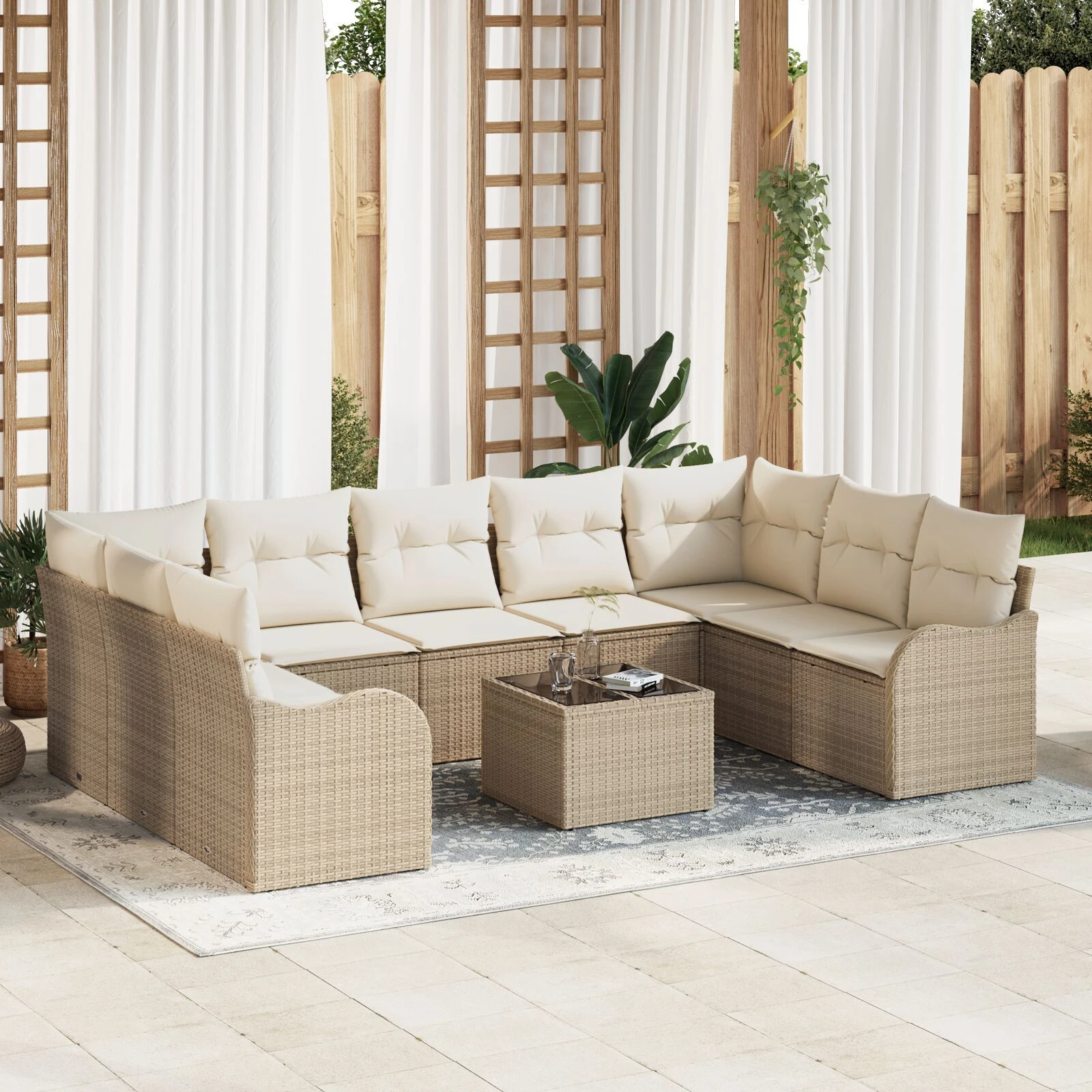 vidaXL Sodo Sofų Rinkinys 10 pcs Smėlio ir balta Poli ratanas