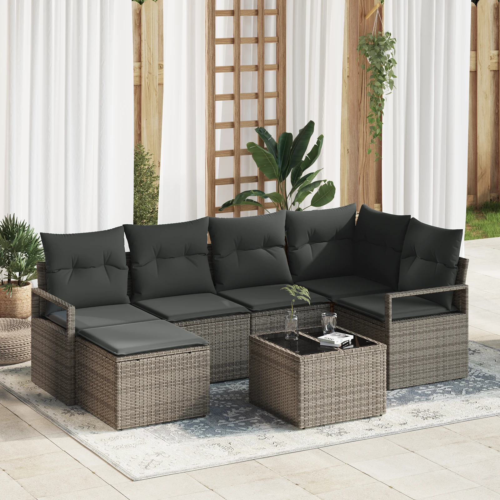 vidaXL Sodo Sofų Rinkinys su pagalve su saugykla 7 pcs Šviesiai pilka