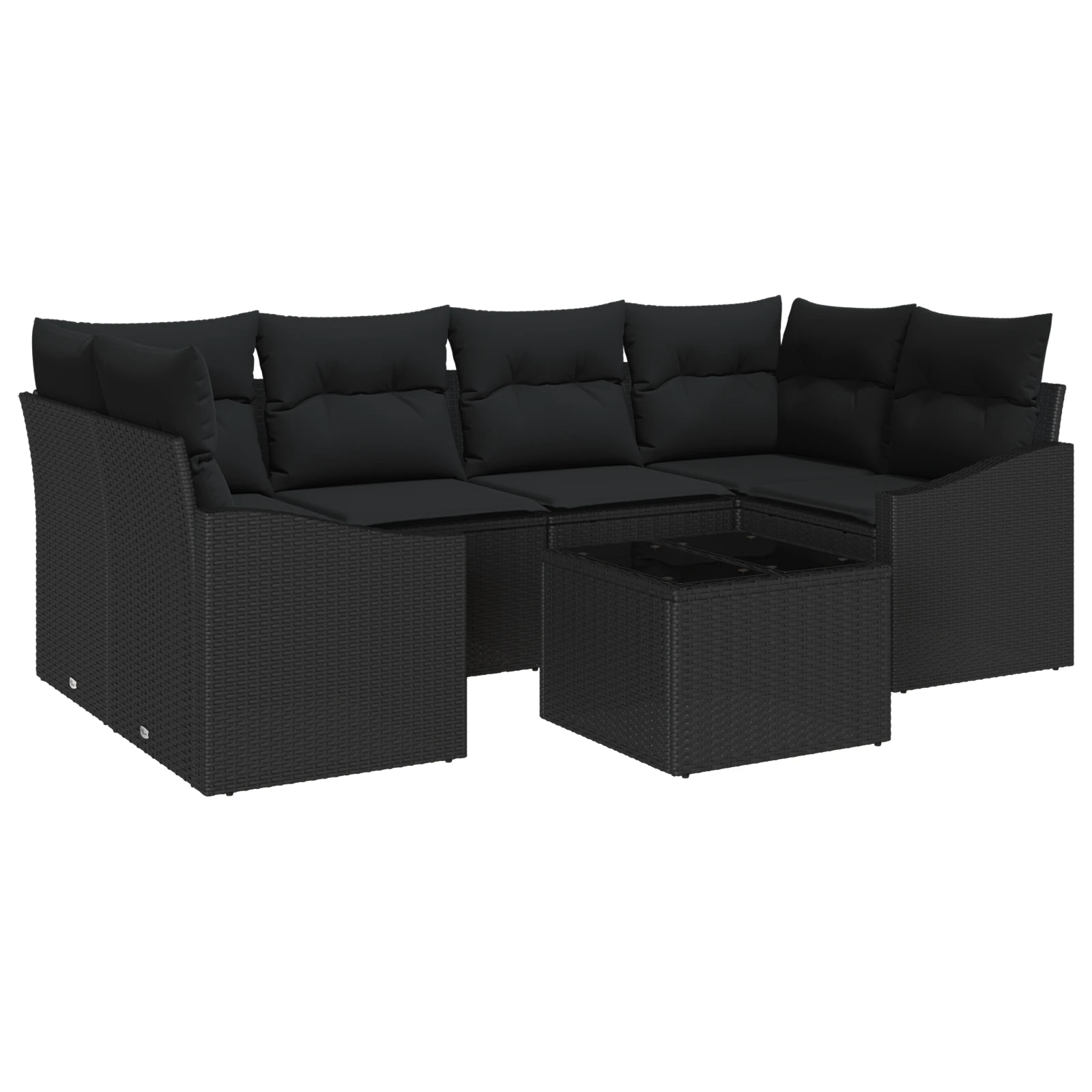 vidaXL Sofos komplektas su pagalve su saugykla 7 pcs Juoda poliratanas