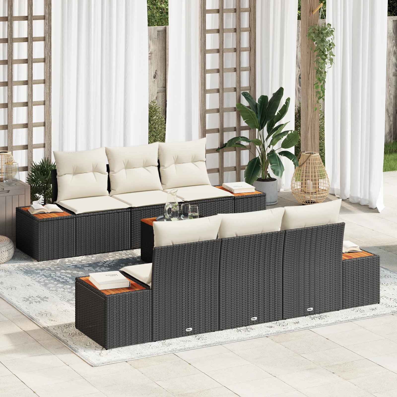 vidaXL Sodo Sofų Rinkinys su pagalve 6 pcs Juoda Poli ratanas